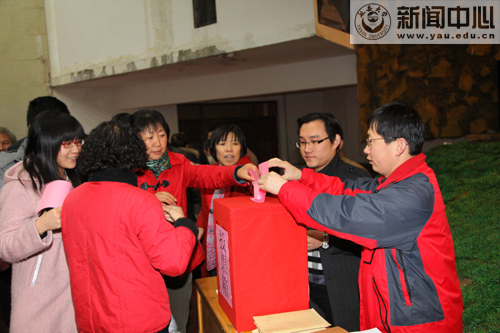 选举会上,白泽生副主席首先通报了我校开展这次选举工作的过程和程序,介绍了我校推选出的宝塔区人大代表正式候选人的基本情况和我校选区选举委员会的组成,同时强调了选举中需要注意的问题。随后,中心会场投票选举正式进行,校领导崔智林、许静洪、胡俊生分别来到投票箱前投入选票。在分会场,各学院也组织学生在指定地点进行了投票选举。虽然今天飘着小雪,但师生们都能听从安排,有序进行投票。