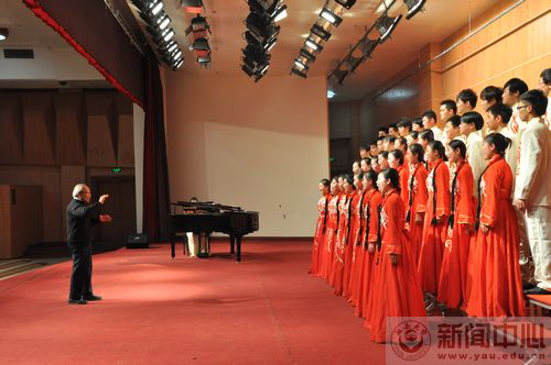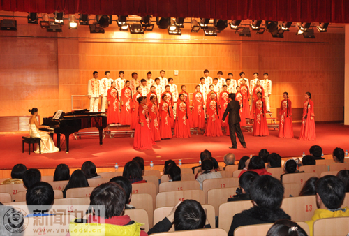 本网讯11月25日晚,我国著名音乐家、教育家、指挥泰斗严良堃先生,陕西省职工音乐家协会主席、省总工会宣教部部长、省合唱协会副会长、我校鲁艺学院客座教授马亚飞,陕西省职工音乐家协会秘书长、省总工会艺术团乐队队长、省合唱协会常务理事焦小虎,省职工音乐家协会理事、省“三县”合唱团团长王玉文等,在我校鲁艺学院5·23音乐厅观看了鲁艺合唱团的汇报演出。汇报演出活动由鲁艺学院院长刘常喜主持,鲁艺学院近300名师生参加了活动。