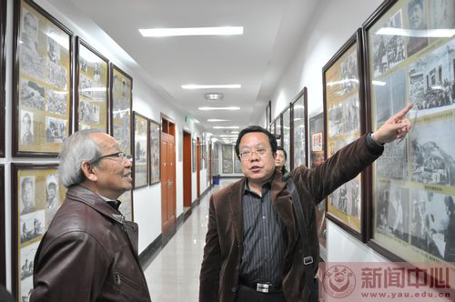 汇报演出活动结束后,严老在鲁艺学院部分负责同志的陪同下,参观了鲁艺学院史陈列图片。在冼星海老师的图片前,严老深情地向大家讲述了跟随老师学习的经历和有关历史故事。