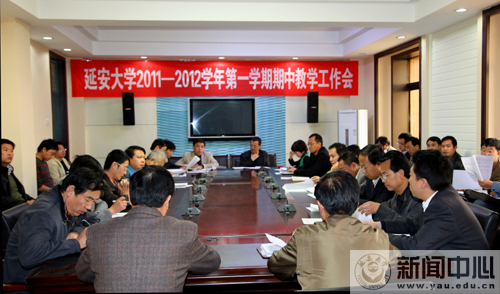 本网讯 10月18日下午,我校在第三会议室举行2011至2012学年第一学期期中教学工作例会,副校长胡俊生,教务处、评估处、教学督导团、教室管理科等部门负责人,各教学单位主管教学工作的副院长及教学秘书参加了会议。会议由教务处处长武忠远主持。
