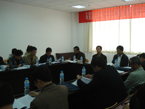 会上,高九江教授对我校马克思主义哲学学科的建设情况进行了简要的历史回顾,并从出版著作、发表论文、主持项目、学术获奖和人才培养等方面介绍了哲学学科30多年来所取得的辉煌成就。同时,他也指出了哲学学科建设中存在的问题,强调应在加强科学研究、教学改革、人才建设、团队协作等四个方面推进今后的学科建设。随后,杨育民、杨亮才、高尚斌、武宏志、徐长玉、韩琳、张文生、李宏斌、冯晓峰等与会教师就哲学学科建设及哲学与素质教育展开了研讨,为我校马克思主义哲学学科的建设工作提出了许多宝贵的意见和建议。