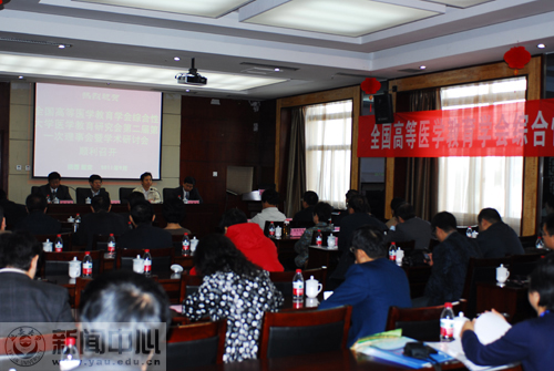 本网讯 今天上午,全国高等医学教育学会综合大学医学教育研究会第二届第一次理事暨学术交流会议在我校窑苑假日酒店三楼会议室举行,教育部评估中心评估处处长刘振天、全国高等医学教育学会综合大学医学教育研究会会长、暨南大学教授宿宝贵,我校副校长许静洪,吉林大学副校长李玉林,郑州大学副校长别荣海、佳木斯大学副校长王树卿出席会议,西安交通大学、东南大学、厦门大学等20余所高校的40多名专家参加了会议。会议由我校医学院院长苗乃周主持。