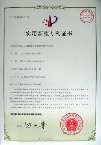 本网讯 我校西安创新学院理工系学生于成龙、曹丹、田蕊等,经过仔细摸索,反复实践,利用三元催化剂电磁效应技术,于近日成功申请了“三元催化剂电磁加热及冷却装置”的实用新型国家专利。