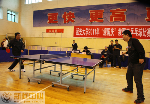 最后,刘建德书记宣布延安大学2011年“迎国庆”教职工乒乓球赛正式开赛。