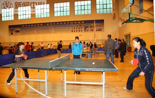 这次全校教职工乒乓球比赛是由延安大学教育工会主办,体育学院和教职工乒乓球协会承办的,是我校近年来规模最大、参与人数最多的乒乓球赛事。有17个基层工会选送的123名运动员,将参加男子团体、女子团体、壮年男子、青年男子和青年女子单打比赛五个竞赛项目的比赛。
