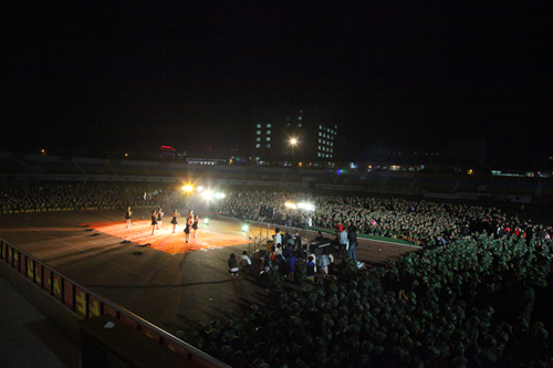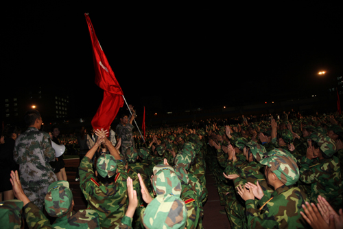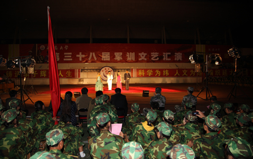 本网讯 9月23日晚,由军训团主办的我校第三十八届军训文艺汇演在校田径场举行,党委书记刘建德、副校长胡俊生、军训团全体教官、各连队指导员及参训学员共同观看了文艺汇演。