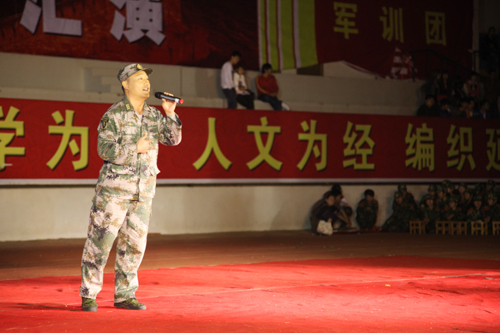 文艺汇演过程中,军训团团长张逆峙及学生处马小惠老师分别演唱了歌曲《我是一个兵》和《哪达达也不如咱山沟沟好》,为晚会增添了别样的风采。