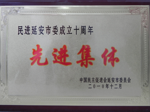 2010年是中国民主促进会成立60周年和民进延安市委员会成立10周年,民进延安大学总支因工作业绩突出,连续荣获中省市多项奖励。一是民进延安大学总支被民进中央授予2010年度“民进全国先进基层组织”称号,这是民进延安大学总支第二次获此殊荣;二是民进延安大学总支被民进延安市委授予民进延安市委成立10周年“先进集体”的光荣称号;三是民进延安大学总支主委徐长玉被民进陕西省委评为2010年度“‘双创’工作先进个人”;四是民进延安大学总支主委徐长玉、副主委白少民、冯晓东、委员王俊虎、刘长海、严君、孟万春获民进延安市委成立10周年“先进工作者”称号;五是老会员刘克悌、刘春贤、兰慧玲获民进延安市委成立10周年“功勋会员”称号,吴俊耀、魏久尧、薛琳娜、王晓虹获民进延安市委成立10周年“优秀会员”称号。