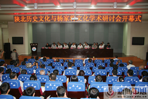 本网讯 今天上午,由陕西省榆林市神木县杨家将文化研究会和我校陕北历史文化研究中心主办、我校陕北历史文化研究中心承办的陕北历史文化与杨家将文化学术研讨会在我校图书馆学术报告厅举行。延安市政协主席樊高林、我校副校长胡俊生、延安干部学院科技部部长马广荣、神木县副县长乔振民、延安市文化局处级调研员刘和民、神木县杨家将文化研究会会长杨国伟、延安市宝塔区副区长雷世全、杨家将研究会副会长马安亮、我校历史文化学院院长张小兵,以及中国社会科学院、陕西师范大学、西北工业大学、榆林学院、山西省太原市社科院等高校和科研院所,陕北各文化部门、各民间研究团体、部分陕北历史文化爱好者等100多人参加了研讨会。研讨会开幕式由我校历史文化学院副院长刘蓉主持。