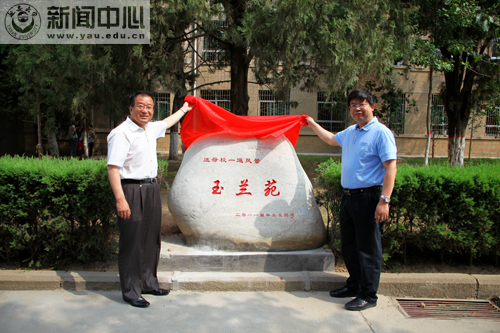 本网讯 6月30日上午,由我校2011届毕业生捐建的玉兰苑揭幕仪式在克阿楼前举行,校党委副书记、校长崔智林,副校长张威虎,以及学生处、后勤处等部门的领导和各学院主管学生工作的负责人与我校2011届毕业生代表200余人参加了仪式。揭幕仪式由后勤处处长台世强主持。
