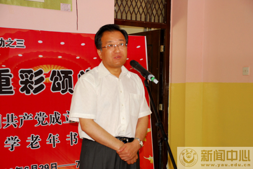 开展仪式上,崔智林校长和许静洪副校长分别讲了话。崔校长在讲话中指出,这些作品体现了老同志们的思想、心境和精神面貌,希望老同志们一如既往地支持我校的工作,为我校的建设与发展积极建言献策。许副校长在讲话中说,老年书画社成员们开展的卓有成效的工作,不仅丰富和充实了老教职工的文化生活,而且活跃了全校师生的文化生活,对我校创建省级文明校园工作也做出了一定的贡献,希望老年书画社的同志们继续努力,争取更大的成绩。我校老年书画社副社长王双才发了言。