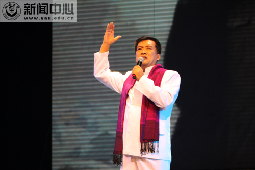 颁奖晚会上,杨希文厅长首先致了辞。他在致辞中指出,在中国共产党90华诞来临之际,全省教育战线隆重举办以“中华诵•颂歌献给党”为主题的经典诵读活动,是语言文字工作的一项重大举措;在革命圣地延安举办这样一场晚会,更为我们提供了弘扬延安精神的难得机遇;晚会纵情歌颂了党的丰功伟绩,是为建党90周年献上的一份厚礼。王登峰司长在讲话中强调,在中国共产党创办的第一所综合性大学举行红色经典诵读晚会具有重要的纪念意义,经典诵读活动体现了马克思列宁主义与中国实际的结合,体现了红色文化与民族历史文化的结合,体现了红色经典与共产党领导下中国发展历史的结合,同时也展现了中华文化的全新面貌。