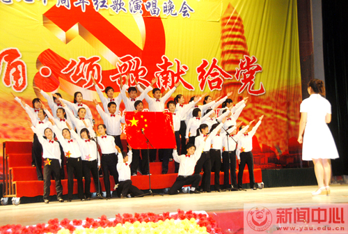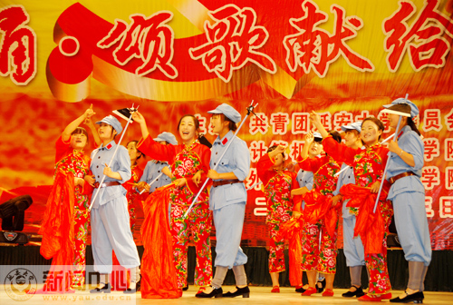 本网讯 6月3日晚,由共青团延安大学委员会主办,计算机学院、体育学院、外国语学院和财经学院共同承办,以“青春耀校园,永远跟党走”为主题的第十三届“校园之春”大学生文化艺术节之红歌演唱会在学生礼堂举行。校党委副书记、工会主席高延龙,副校长胡俊生,以及各部门、各学院负责人和1100多名师生一同观看了演唱会。