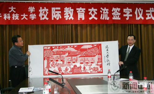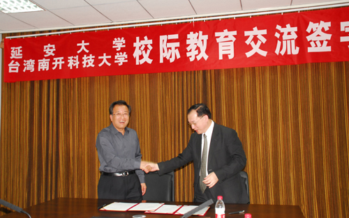 随后,崔智林校长和陈猷龙校长分别在协议书上签了字,并交换了协议文本,双方互赠了纪念品。这是去年我校与世新大学签订校际学术交流合作协议之后,结交的又一个台湾院校。