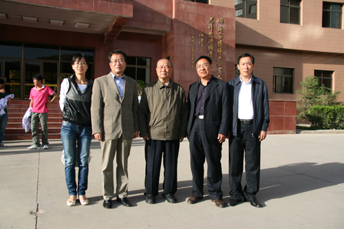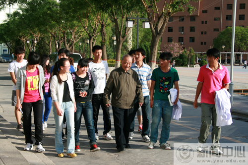 云老兴致勃勃地与我校主要领导和校友办同志合影留念
