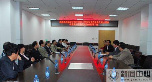 本网讯 5月11日下午,正在中国延安干部学院第三期党性修养专题培训班参加培训的14位领导,由国家外国专家局教科文卫司副司长陈化北带领,在陕西省外国专家局副局长王武秀的陪同下,来我校检查指导工作。在图书馆第一会议室,来自培训班的领导与我校校长崔智林、副校长张威虎,以及国际交流处处长吴卫东、副处长杨向宏等进行了座谈。