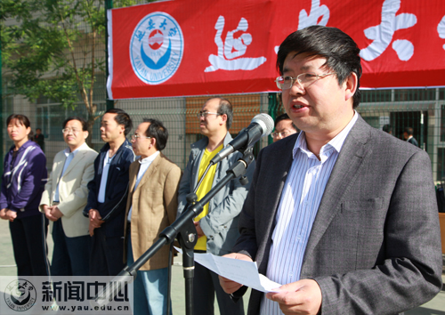本网讯 5月12日下午,我校2011年“联通杯”教职工篮球赛开幕式在校篮球场举行,张威虎副校长出席开幕式并讲了话,中国联通延安分公司党群工作部经理任尚斌,我校工会副主席、附属医院工会主席沙文江,各基层分会主席,以及230多名运动员参加了开幕式。开幕式由校工会副主席徐宁主持。