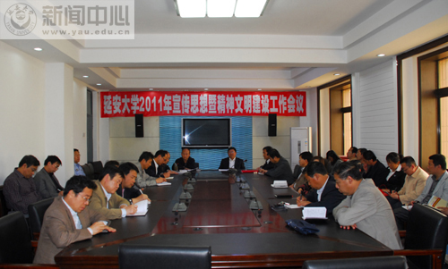 本网讯 今天下午,我校2011年宣传思想暨精神文明建设工作会议在逸夫楼第三会议室举行,党委副书记高延龙和各学院、各部门相关负责人参加了会议。会议由宣传部副部长李宝怀主持。
