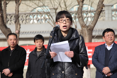 学生代表、生命科学学院园林专业2008级学生张蕊在仪式上发了言,表示将积极响应学校号召,用实际行动做校园文明的使者,用辛勤和汗水为母校增添一道道亮丽的风景。