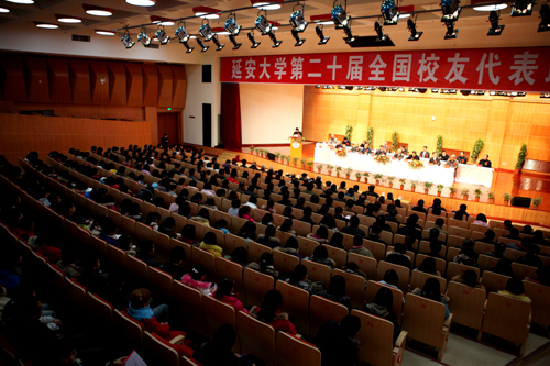 校党委副书记高延龙向与会校友们通报了一年来延安大学的建设和发展情况,重点从校友联谊会促进校友的联系沟通,积极筹建和支持各地校友分会工作,积极动员和组织广大校友支持母校工作,搭建校地合作平台以促进双方共同发展,积极创新以推进校友工作新局面和广泛开展同全国其他高校校友工作部门的交流工作等6个方面,通报了学校校友总会的工作情况。他强调,校友是促进母校改革和发展的一支重要力量,学校各项成绩的取得,都离不开校友的关心和支持,希望广大校友以这次全国校友联谊会为契机,加强交流,积极沟通,一如既往地关心和支持母校的建设与发展,也希望在座的每一位校友,都能关心和支持学校校友总会的工作,促进校友工作不断取得新成绩。