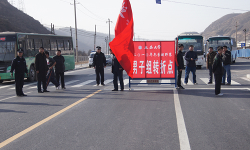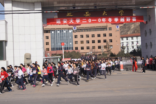本网讯 12月12日下午,一年一度的我校大学生冬季越野赛在二大门发枪,来自全校17个学院的1086名选手分为男、女两个组别参加了比赛。越野赛起点为学校二大门,男子组沿枣园路至职业技术学院折返,全程约10000米;女子组沿枣园路至延安干部学院门口折返,全程约5000米,终点为校田径场。