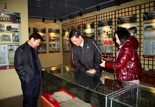 本网讯 11月30日,第四军医大学心血管内科主任、博士生导师杜日映教授受聘为我校附属医院心血管内科大主任。受聘后的第二天,12月2日上午,在人事处处长杜红荣等的陪同下,杜日映教授参观了我校校园和校史陈列馆。在校史陈列馆里,杜日映教授认真听取了工作人员的讲解,重点就我校附属医院的历史及发展状况进行了了解,杜红荣处长对杜日映教授感兴趣的问题进行了补充介绍。参观结束后,杜日映教授为校史馆题词:“继承延大革命传统,办好延大附院。”