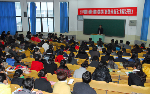 本网讯 11月20日上午,2010年延安市高校教师岗前培训暨教师资格教育基础理论知识培训班在我校第三阶梯教室开班,这是我校被教育厅设立为陕西省高校教师岗前培训暨教师资格教育基础理论知识培训点后进行的首次培训。这次参加培训的人员涉及我校及延安职业技术学院和延安电大3所学校的150名青年教师,培训课程以《高等教育学》、《教育心理学》、《教育政策法规》和《教师职业道德》4门课程为主,培训门次达到723门次。
