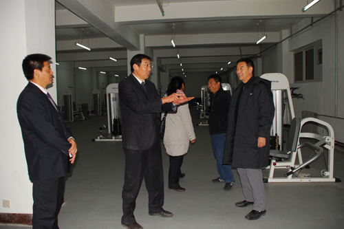 座谈结束后,在齐广才处长和郑兵副院长等的陪同下,专家组实地考察了我校体育场所、健身设备和文件资料。