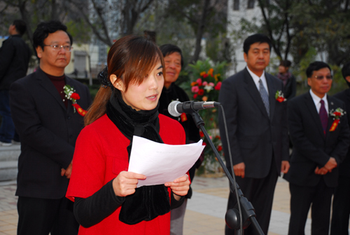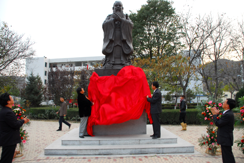 本网讯 11月6日下午,孔子圣像落成揭幕仪式在我校窑洞广场举行,我校副校长许静洪,香港孔教学院院长汤恩佳、副院长吕天增,以及我校党办、对外联络处、文学院、历史文化学院、公管学院的负责人与文学院和公管学院部分师生代表参加了揭幕仪式。仪式由我校对外联络处处长吕达主持。