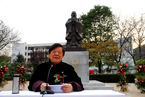 许静洪副校长在讲话中指出,孔子圣像的落成是我校校园文化建设的一项重要组成部分,为学校增添了一道亮丽的风景,对学生成长、成才有着积极的教育意义。同时,他也衷心希望与香港孔教学院进一步加强交流合作,与社会各界一道,共同为传承和弘扬传统文化做出应有贡献。