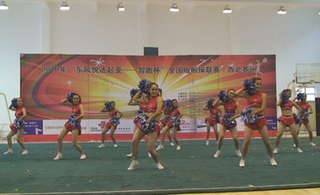 本网讯 10月22日至24日,由国家体育总局体操运动管理中心、中国蹦床与技巧啦啦操分会主办,西安体育学院承办的2010年全国啦啦操联赛西北赛区比赛,在西安体育学院举行。本次比赛共有来自西北五省的14支队伍的218名选手参加了比赛,我校啦啦操队在教练张智颖、宗延伟的带领下,经过顽强拼搏,获得大学组舞蹈啦啦操花球项目冠军。中国蹦床与技巧协会副秘书长唐金山亲临赛区进行了指导。