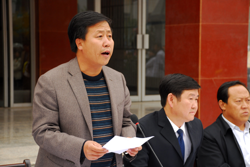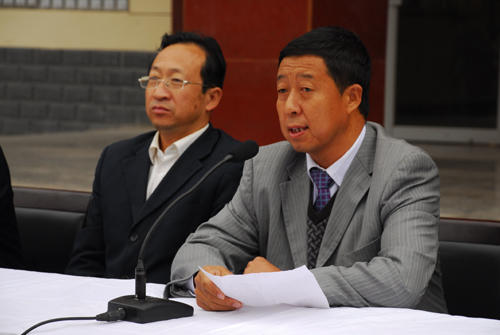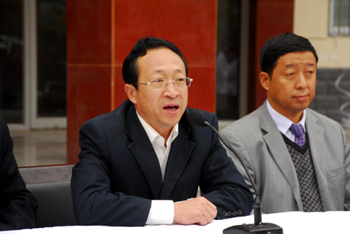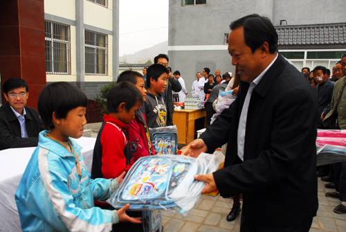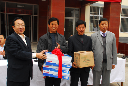 白泽生副主席在讲话中对新一轮的“两联一包”工作任务进行了说明,期望通过大家的共同努力,使得阳道峁村的文化生活,教育卫生、生产生活等各个方面都有较大的提高和改善。沙文江同志介绍了参加此次义诊活动的附属医院科室和医生名单。随后,白泽生副主席向阳道峁村扶贫点再次捐赠现金20000元,并与沙文江副主席和牛永红副书记共同向阳道峁村捐赠农村致富光碟8套、DVD播放机4台、毛衣40件、裤子40件、演出秧歌服240套、学习用品65套。