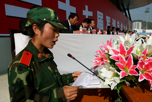 汇报表演结束后,三营十七连的张红梅作为军训学员代表发了言,王启田大校、吴建平副政委和廉振民校长先后讲了话。廉振民校长在讲话中对本届军训团在军训中所做的工作和所取得的成绩表示肯定,他希望受训学员们把训练场上严格规范、知难而上、百折不挠、奋勇拼搏的军训精神和精神风貌带进课堂,带入今后的学习生活中,秉承“立身为公,学以致用”的校训,勤奋学习,勇于进取,努力把自己培养成为一名具有创新精神和实践能力的合格大学生。
