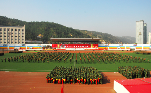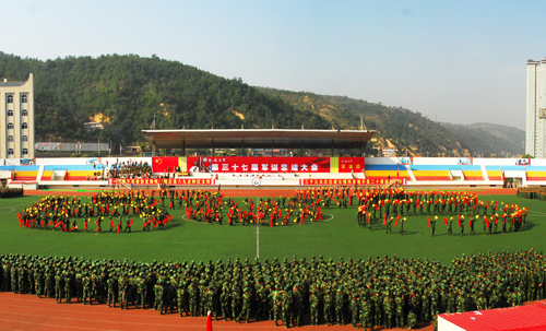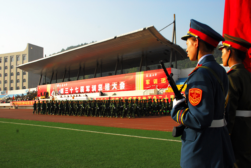 今年我校学生军训工作从9月13日开始,历时15天,共有2010级3546名学生参加了军训,军训内容主要包括军事理论教学和军事技能训练。在两个星期中,完成了条令教育、队列训练、实弹射击、内务整理等任务,同时还开展了一系列丰富多彩的文体活动。
