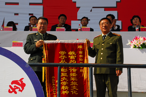 最后,刘建德书记代表学校向西安陆军学院赠送了锦旗。