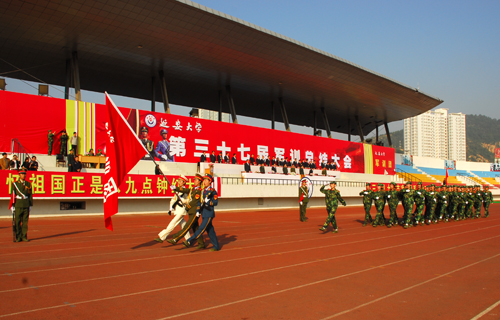 本网讯 经过两个星期紧张而有序的军事训练,我校第37届学生军训工作圆满结束。今天上午,第37届学生军训总结大会在校体育场隆重举行,校党委书记刘建德,副书记、校长廉振民,西安陆军学院教研部主任王启田大校、教研部张逆峙上校,延安军分区副政委吴建平大校,延安宝塔区武装部政委范卫东上校,军训团领导、有关部门及各学院主管学生工作的负责同志,以及全体教官和参训学生参加了大会。会议由我校副校长胡俊生同志主持。