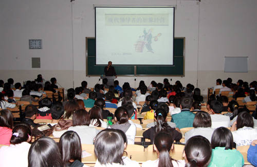 本网讯 9月27日晚,文学院院长姚怀山教授在玉章楼第五阶梯教室,为我校师生作了题为《现代领导者的形象经营》的学术报告。报告会由文学院副院长惠雁冰主持,我校400余名师生参加了报告会。