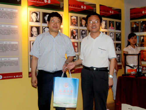 本网讯 今天上午,陕西理工学院访问团一行15人,由院长何宁带领,来我校访问交流。我校张威虎副校长和校办副主任兰鸿涛接待了何宁院长一行,并陪同他们参观了我校校史陈列馆。参观结束后,何宁院长为校史陈列馆题了词,张威虎副校长向何宁院长赠送了纪念品。