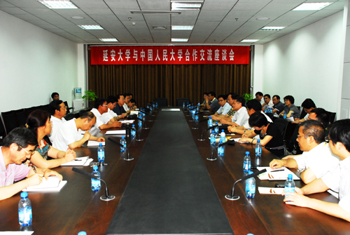 中国人民大学牛维麟副书记在讲话中说,历史记载了中国人民大学和延大的密切关系,不需赘言。省部共建以来,中国人民大学和延安大学的合作日益紧密,在两校对口支援协议的框架下,中国人民大学愿意为延安大学提供更多的帮助。他同时指出,中国人民大学作为在延安成长起来的高等学校,愿意更多的来到延安,来到延大,为陕北区域经济建设和社会发展出一份力。随后,与会的两校对口部门同志进行了积极交流。