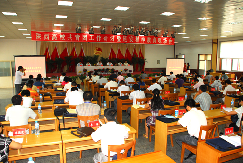 本网讯 7月5日上午,陕西高校共青团工作研讨暨“延安精神”教育现场会在我校学生活动中心举行,陕西省教育工委副书记、教育纪工委书记郝利生,我校党委副书记高延龙,陕西省教育工委组织群工处处长王军周,以及来自全省73所高校的团委书记、团总支书记、副书记等参加了会议。会议由教育团工委书记、陕西省委教育工委群工处副处长王恒斌主持。