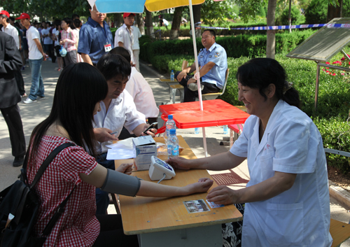 医护人员为考生测量血压