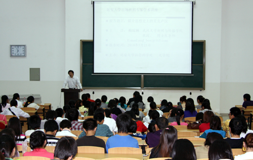 本网讯 日前,应我校社科处和文学院邀请,武汉大学新闻与传播学院博士生导师梅琼林教授为我校师生作了一场题为《媒介思想史上的麦克卢汉》的学术报告,300余名师生在玉章楼第七阶梯教室聆听了报告。报告由文学院新闻教研室主任王延雄主持。