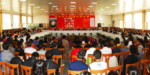 本网讯 正值毛泽东《在延安文艺座谈会上的讲话》发表68周年之际,5月20日上午,由中国作家协会出版集团、陕西省作家协会、延安大学和中国解放区文学研究会联合主办,延安大学文学院、延安大学校友会、延安文学艺术界联合会和宝塔区文学艺术界联合会协办的“忽培元文学创作研讨会”在我校学生活动中心举行。来自北京、黑龙江、陕西及全国其他部分省市的文学评论界人士、作家、学者、文学爱好者及我校文学院师生300余人参加了研讨会。