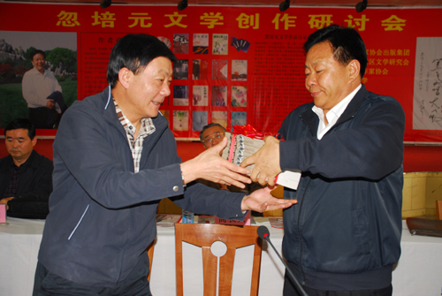 我校党委书记刘建德在讲话强调了本次创作研讨会的召开对文学创作和延安大学人才培养等方面的重要意义,赞赏了忽培元旺盛的创作热情与自强不息的勤奋精神,以及作品的民众意识和底层意识。随后,忽培元为我校图书馆捐赠了图书,廉振民校长为忽培元颁发了客座教授聘书。