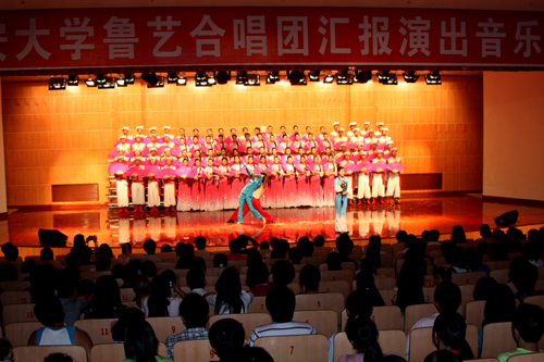 本网讯 5月22和23日晚,我校鲁艺合唱团 “陕北情韵——唱响维也纳”汇报演出两次在星海楼音乐厅举行,党委书记刘建德、校长廉振民、党委副书记高延龙,党委委员、党办主任田伏虎等,先后与我校文科和理科各学院的师生代表观看了演出。