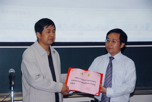 我校副校长许静洪宣读了《延安大学关于聘任储朝晖同志为兼职教授的通知》,并向储朝晖博士颁发了聘书。闫世笙院长介绍了储朝晖博士的基本情况,希望储朝晖博士发挥自己的学术特长,为教科院的教学、管理、学科建设、科学研究给予指导、支持和帮助。