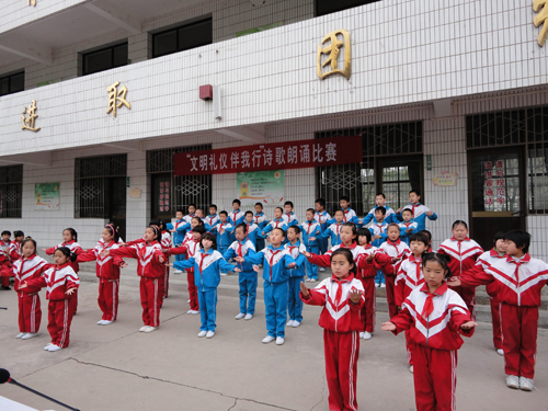 本网讯 为了使小学生学习和牢记文明礼仪常识,培养他们理解、宽容、谦让、诚实的待人态度和庄重大方、热情友好、礼貌待人的文明行为,5月14日下午,附属小学在校园内开展了“文明礼仪伴我行”诗歌朗诵比赛活动。比赛以班级为单位,通过朗诵《“文明礼仪”三字歌》、《少先队员的足迹》等内容的诗文,提升小学生讲文明的行为意识。经过紧张而激烈的比赛,附小五年级获得第一名,三年级获得第二名,二年级获得第三名。