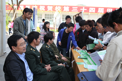 本网讯 为集中开展高校毕业生入伍宣传动员工作,响应国家号召,形成我校毕业生积极报名应征的良好校园氛围,根据学校毕业生入伍工作领导小组工作安排,5月11日,我校相关部门在雅苑心海广场启动了“延安大学2010年应届毕业生入伍预征工作周”活动。就业指导中心主任马建平、武装部部长王延海、学生处等部门的相关负责人和宝塔区武装部部长陈占波、副部长张辽等出席了启动仪式,并现场为我校毕业生就相关政策、报名时间、报名程序进行了解答。