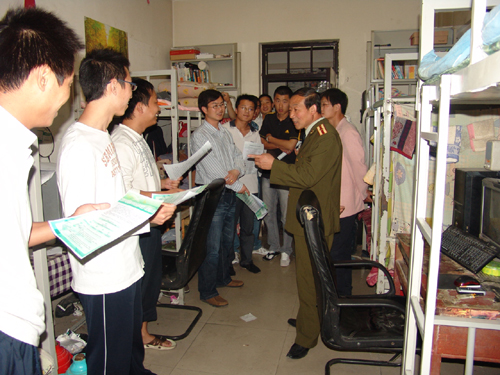 5月11日晚,校武装部,就业指导中心、学生处等部门的相关负责人深入学生公寓,带领入伍预征工作宣传组全体成员走访了我校毕业生男生宿舍,散发了入伍预征材料,并就相关政策进行了讲解,鼓励我校应届毕业生积极响应国家号召参加入伍政策,以一颗赤子之心报效祖国。据统计,当日累计发放《2010年普通高校应届毕业生入伍预征公告》500份,《国家鼓励普通高等学校应届毕业生入伍服义务兵役政策五十问》100份。