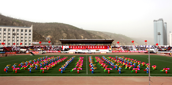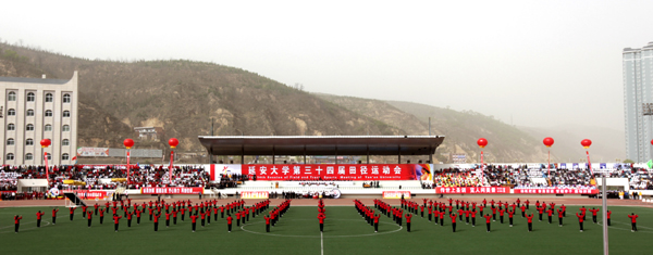 本网讯 4月28日上午,延安大学第三十四届田径运动会在校体育场隆重开幕,我校党政全体领导,延安职业技术学院副院长刘沛奇、延安市体育局副局长高强、延安市教育局纪检书记王亚玲、校体育运动委员会全体委员以及全校15000余名师生参加了开幕式。开幕式由第三十四届田径运动会执行主席、校工会副主席白泽生主持。